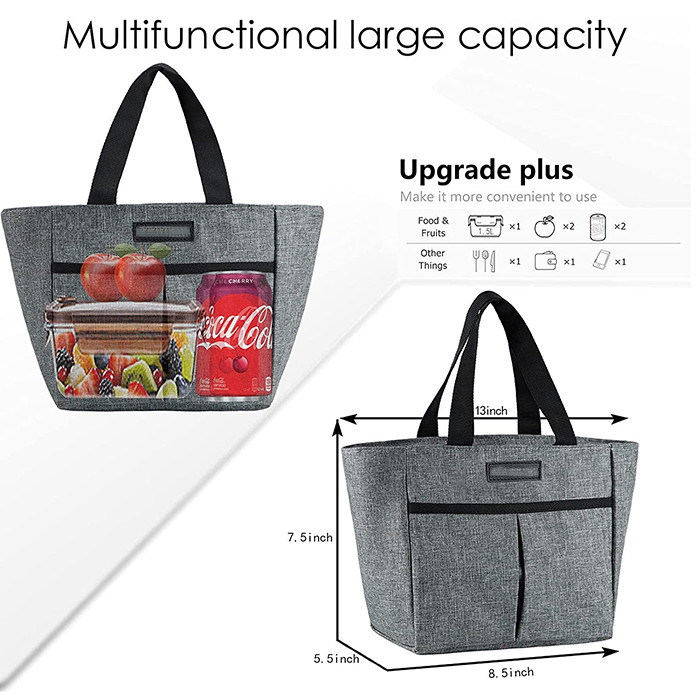 Υψηλό φως: | Γκρίζες επαναχρησιμοποιήσιμες τσάντες μεσημεριανού γεύματος,Προσαρμοσμένες επαναχρησιμοποιήσιμες τσάντες μεσημεριανού γεύματος,Θερμικές τσάντες μεσημεριανού γεύματος ODM για τους ενηλίκους |